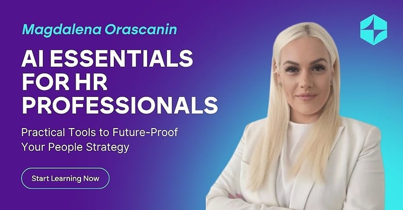 Recentemente, concluí o curso AI Essentials for HR Professionals (Fundamentos de IA para Profissionais de RH), ministrado por Magdalena Orascanin, e posso afirmar com segurança que ele é essencial para qualquer líder de RH que deseja preparar as suas competências para o futuro.