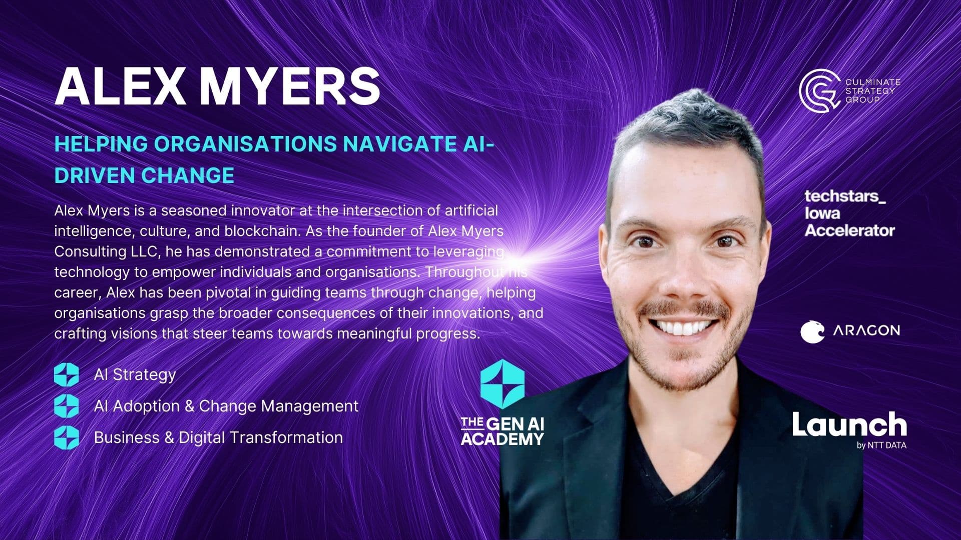 Alex Myers é um inovador experiente na intersecção entre inteligência artificial, cultura e blockchain. Como fundador da Alex Myers Consulting LLC, ele demonstrou um compromisso com o uso da tecnologia para capacitar indivíduos e organizações. Ao longo de sua carreira, Alex tem sido fundamental para orientar equipas durante mudanças, ajudando organizações a compreender as consequências mais amplas de suas inovações e criando visões que conduzem as equipas a um progresso significativo.