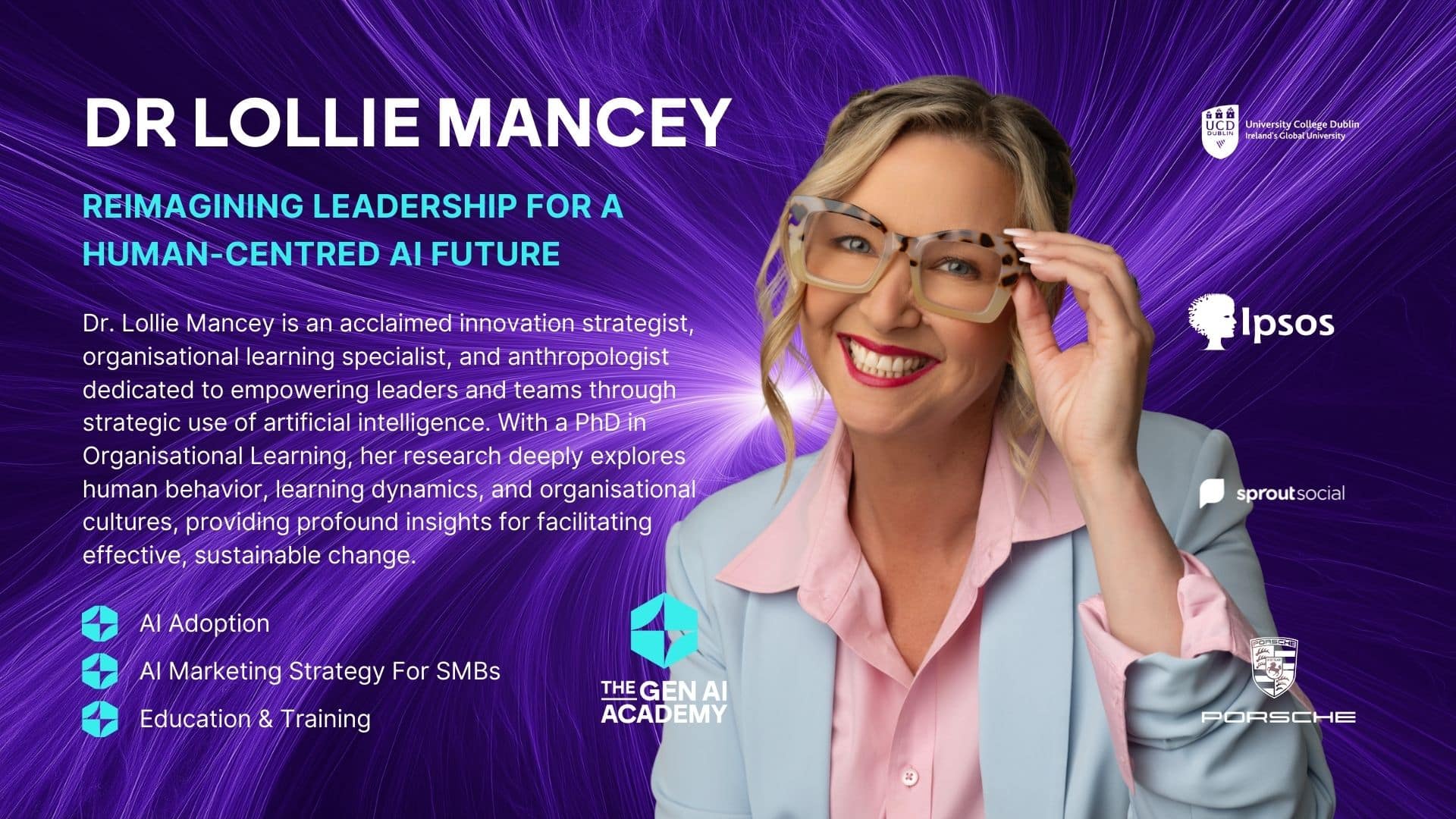 Descrita como uma «estrela do pensamento empresarial», a Dra. Lollie Mancey é uma antropóloga, futurista e educadora conhecida por decifrar mudanças complexas com clareza e perspicácia. Ela traz uma perspetiva cultural para a inovação, ajudando as organizações a navegar pela transformação da IA com profundidade ética e confiança criativa. Na The Gen AI Academy, Lollie oferece formação em liderança e insights estratégicos que capacitam as equipas a aproveitar a IA generativa para um impacto ousado e centrado no ser humano.