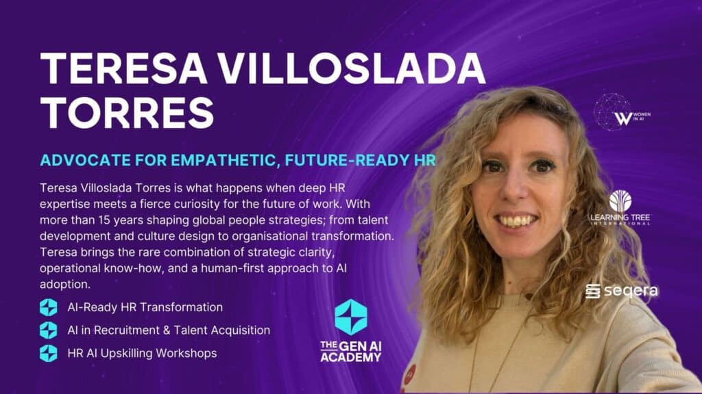 Ela trabalhou em Espanha, no Reino Unido e em toda a Europa, em parceria com líderes para construir organizações de alto desempenho e orientadas por valores, onde as pessoas não apenas sobrevivem às mudanças tecnológicas, mas crescem com elas. Teresa é especialista em integrar a IA nas funções de RH de forma a proteger a humanidade, elevar a capacidade e fortalecer o núcleo cultural de uma organização. Seja através do mapeamento de talentos alimentado por IA, inteligência de competências, otimização do recrutamento ou reescrita da experiência dos funcionários para uma era aumentada, ela ajuda as equipas de RH a passar da incerteza para a confiança.